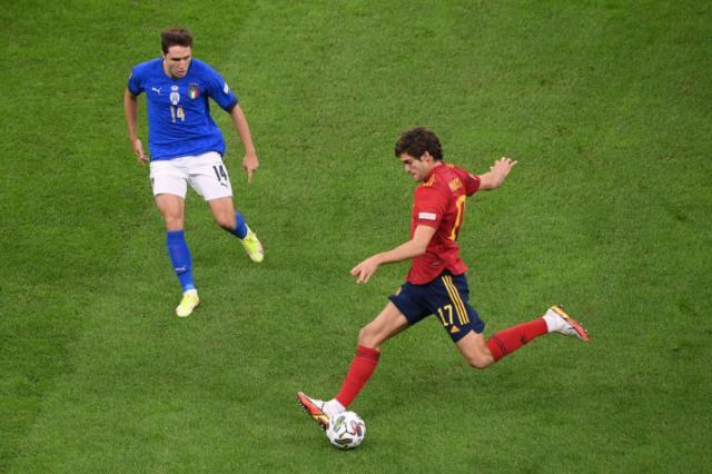 在圣西罗的前30分钟,西班牙和意大利仿佛灵魂对调,和欧洲杯半决赛上的双方完全是相反的打法。西班牙奋勇向前,力图快速简洁的打法,不介意交换球权,而是卡住位置不让意大利发动齐头并进的反击。本场最亮眼的发现其实并不是梅开二度的费兰·托雷斯,而是马科斯·阿隆索。他在左路极其聪明的持球突进和精准的传中让球队找到了打开对手防线的钥匙。阿隆索的出现无疑让本就竞争激烈的左后卫人选变得更加难以确定,毕竟阿尔瓦、加亚如果没有伤病,都将是这个位置的首选。
